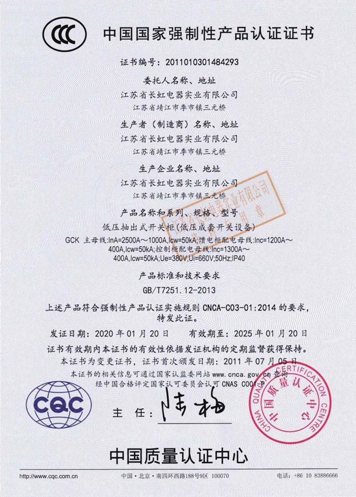 產品均已通過了由國家權威機構進行的型式試驗,并于2003年通過了CCC強制性產品認證。